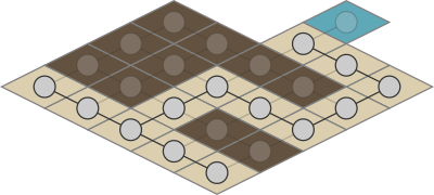 The link action doesn't allow to link 2 instances of the same objects. So, 2 objects must be used to build the grid and they will be connected alternatively. Each cell contains one instance of these 2 objects. One will likely be shown to the screen and the other one hidden and only used for calculations on the graph.