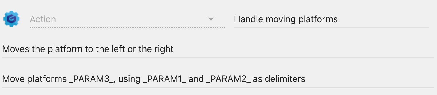 Parameters are automatically extracted from the events by GDevelop. GDevelop will understand which objects, groups and behaviors you're using - as well as the object types.
