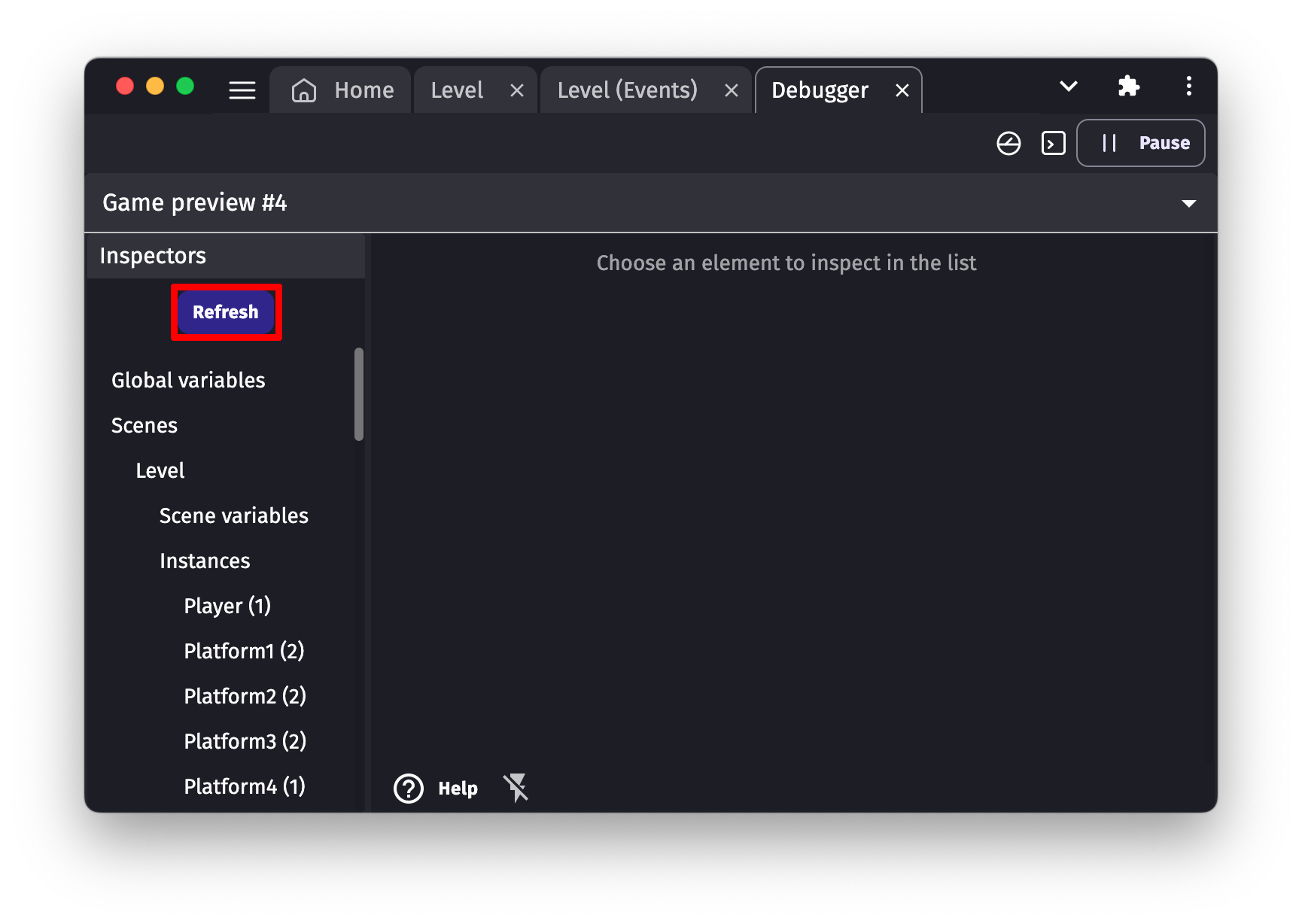 To do this, in the list, click on Global Variables, Scene variables, or the instance number that you want to inspect.