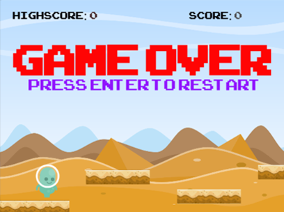 - The third state is the "Game Over" state when the character falls off the platform. We are going to refer to this state using the value 2.