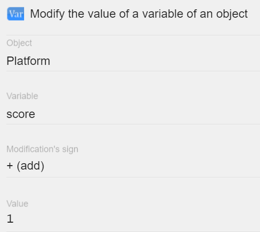 A Score system is a necessary element in every game. Adding this to our game is very easy as we don't need to add any new events. We are going to edit some of the events that we have already created to accommodate this system. We want the score to start from 0 every time the game starts. The score keeps updating until the Game Over state is reached. First, let's make an object variable to store this score value.